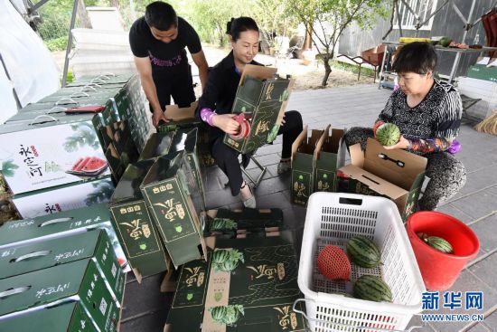 5月24日,北臧村镇永兴缘农产品产销专业合作社的员工在包装准备上市的西瓜。