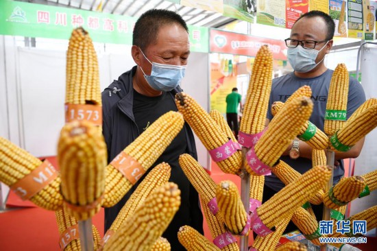 7月27日,参会者在展览现场了解种子产品。新华社记者 王鹏 摄