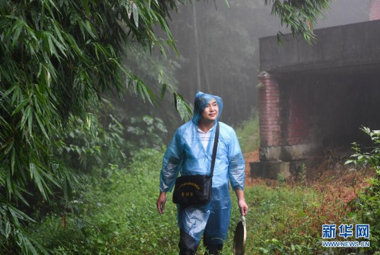 8月8日,重庆市开州区岳溪镇胡家村群测群防员安江波在巡查地质灾害隐患点。