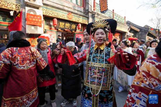 1月30日,演员在北京厂甸庙会上进行京味文化巡游表演。