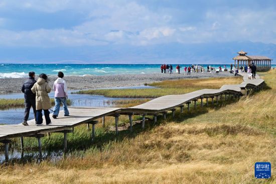 赛里木湖(简称“赛湖”)位于新疆博尔塔拉蒙古自治州,是新疆海拔最高、面积最大的高山湖泊。秋日里,赛里木湖碧波万顷,风景如画,吸引各地游客前来游览。
