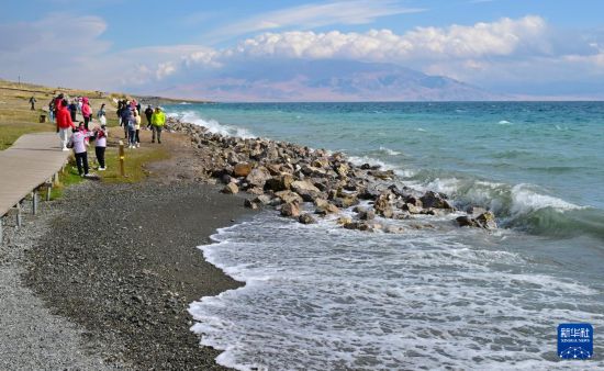 9月11日,游客在赛里木湖景区游览。