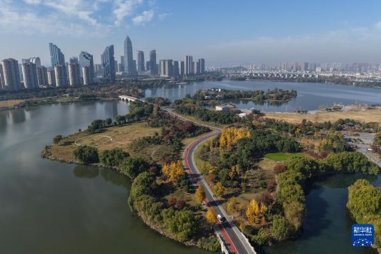 11月30日拍摄的绍兴迪荡湖景区(无人机照片)。