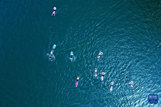 冬日,云南省大理白族自治州南涧彝族自治县公郎镇的澜沧江猛龙渡依旧热闹,游客在碧水青山间游泳、划桨板、骑摩托艇,享受“玩水”乐趣。