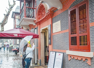 图为3月24日,参观者在中共一大代表宿舍旧址前拍照留念。 |